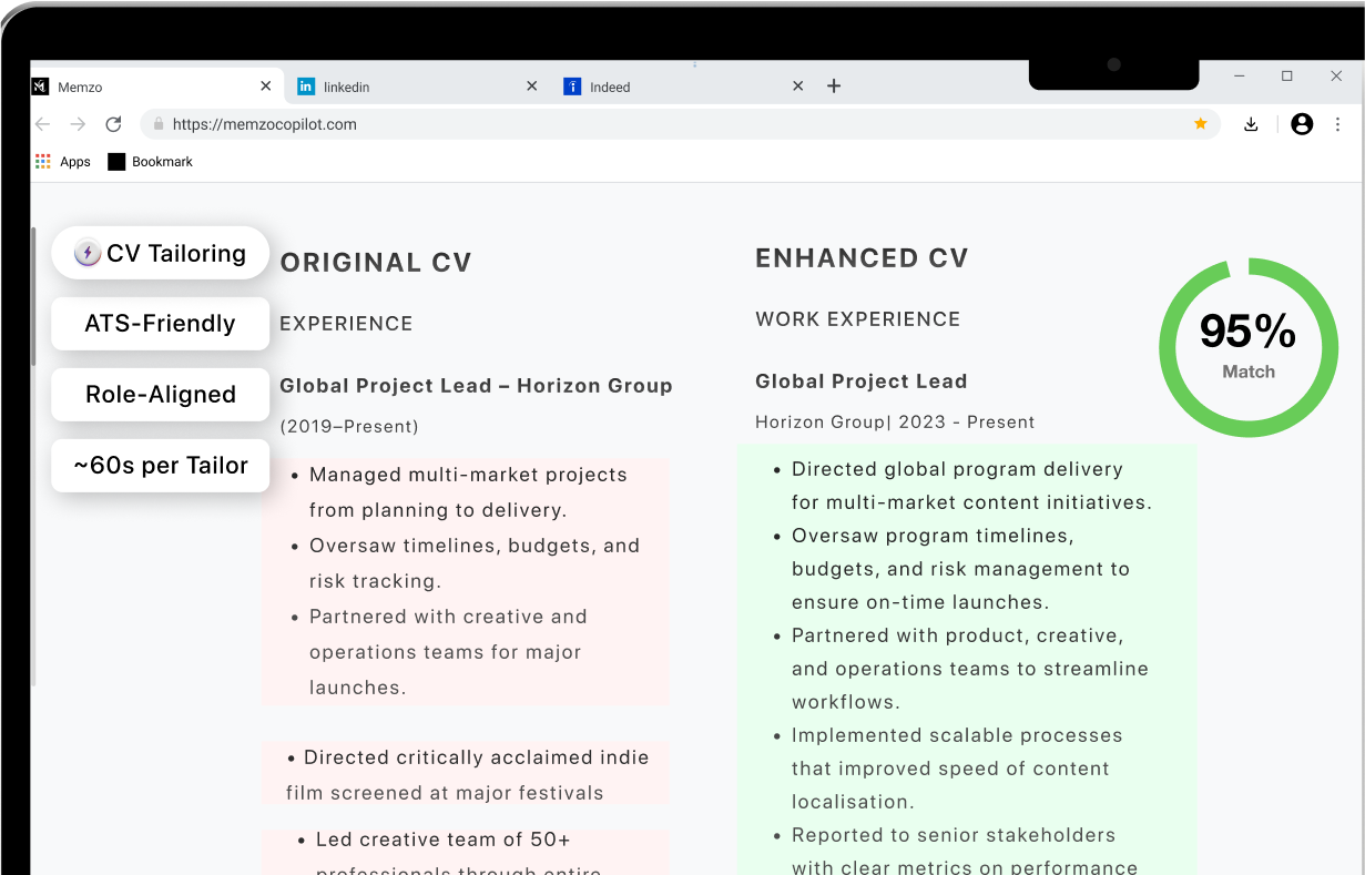 The Job Application Kit. Lets you know your CV match score and possible turbulence